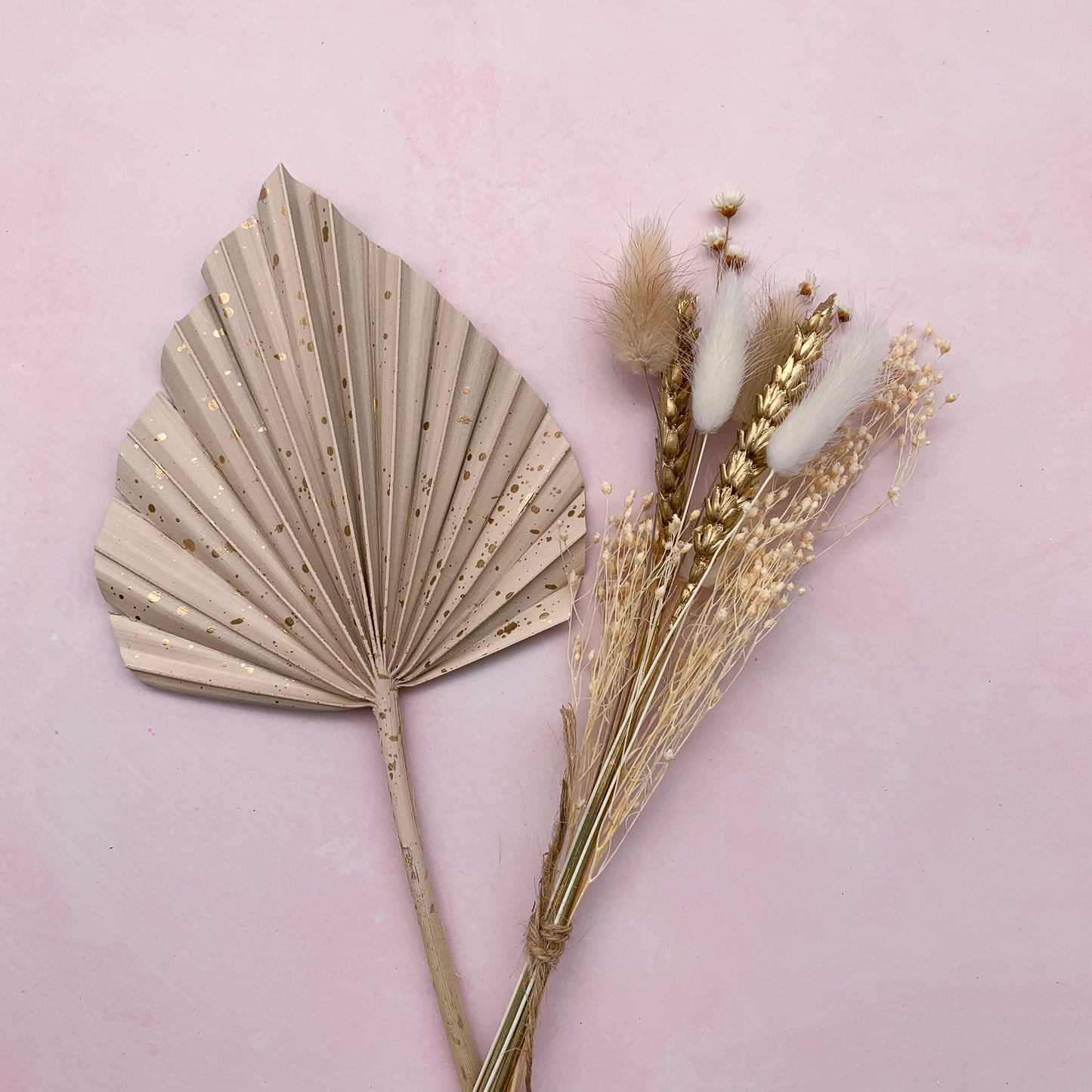Almond fleck palm and natural dried flowers set