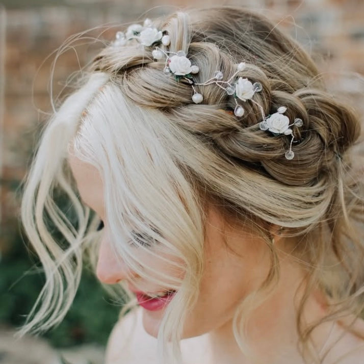 FLORENCE Rose and Freshwater Pearl Hair Vine